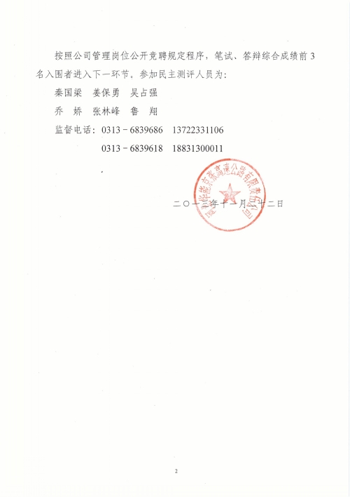 管理崗位公開競聘筆試、答辯成績公示