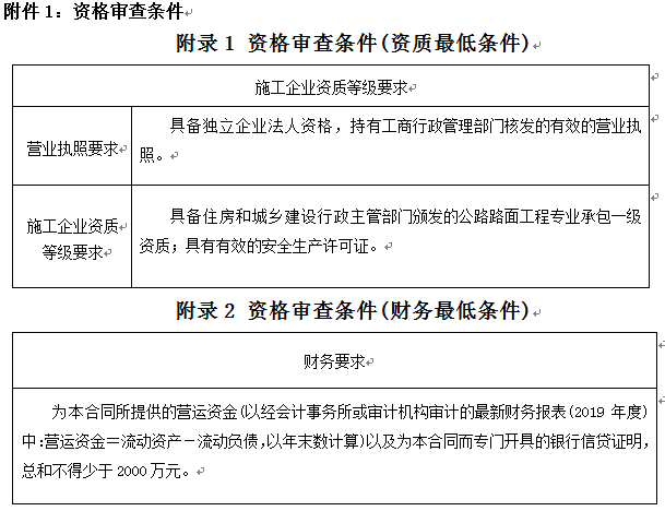 3.1本次招標(biāo)要求投標(biāo)人具備獨立企業(yè)法人資格,滿足本公告附件1要求的資格審查條件,并在人員、設(shè)備、資金等方面具備相應(yīng)的施工能力。