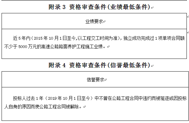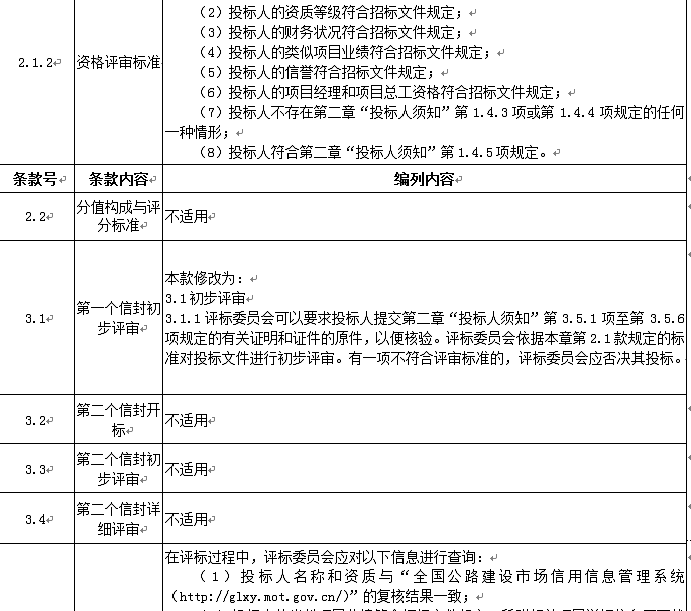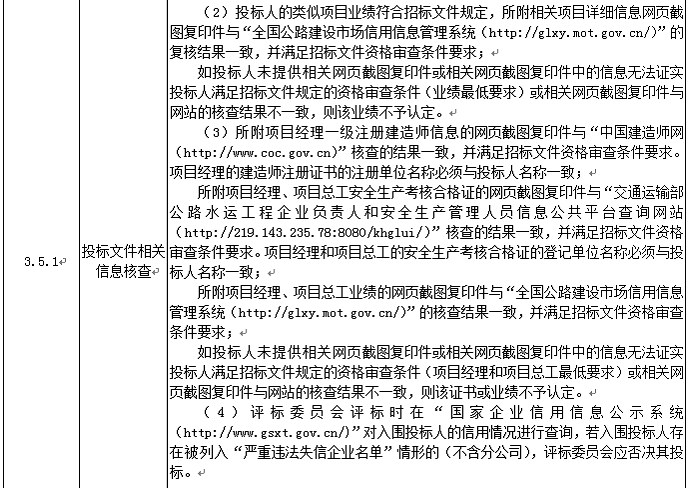 投標(biāo)人應(yīng)進入交通運輸部“全國公路建設(shè)市場信用信息管理系統(tǒng)(http://glxy.mot.gov.cn)”中的公路工程施工資質(zhì)企業(yè)名錄,且投標(biāo)人名稱和資質(zhì)與該名錄中的相應(yīng)企業(yè)名稱和資質(zhì)完全一致。